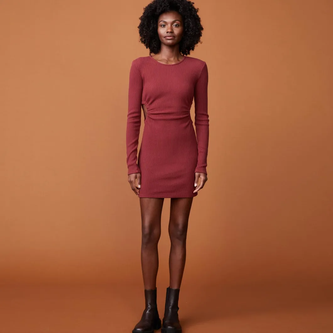 Be the first to review “MONROW Brushed Rib Cut Out Dress RHUBARB Best Sale” Cancel reply