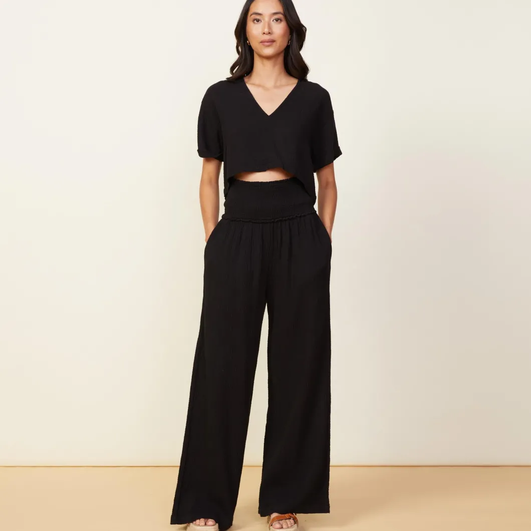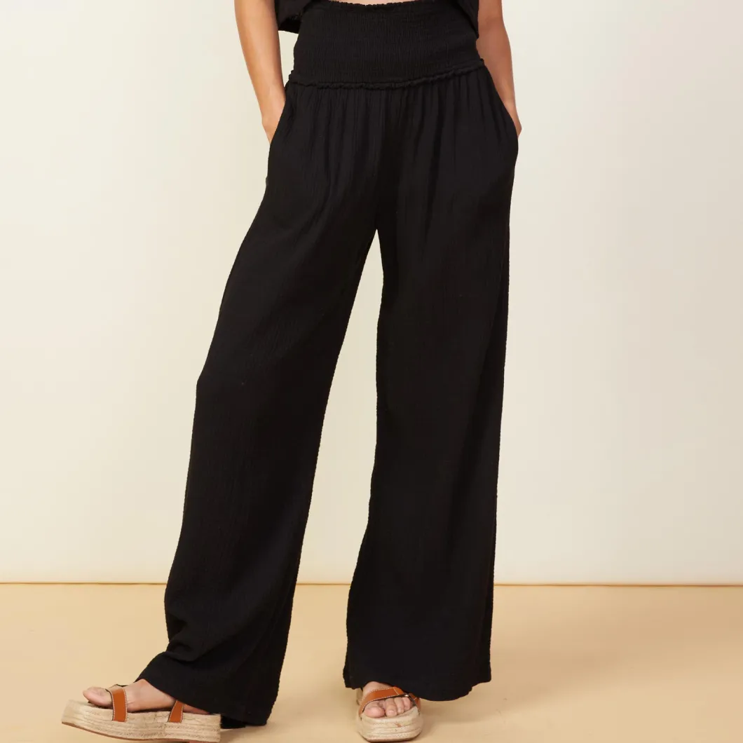 - Gauze Smocked Flare Pant