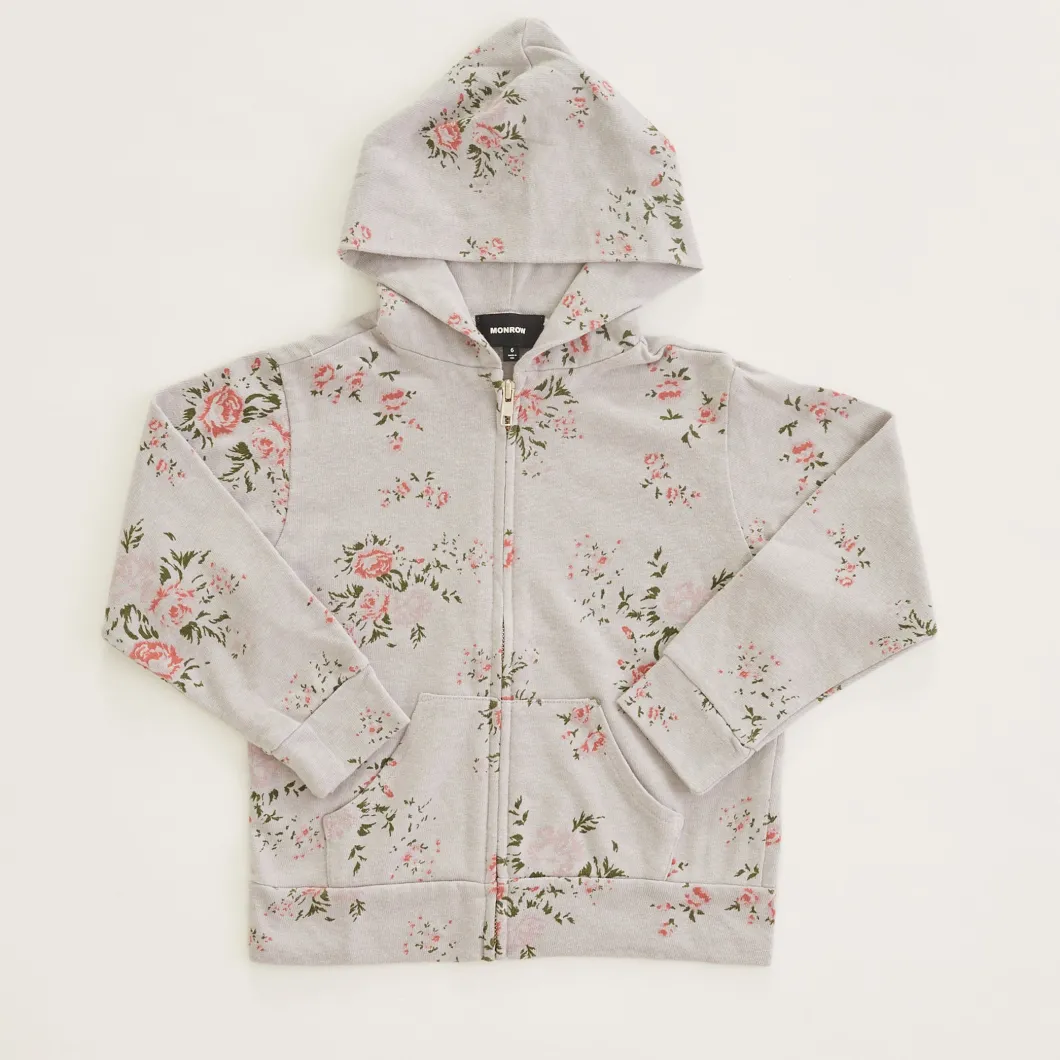 - Kids zip up hoody with floral print in our brushed fleece fabric