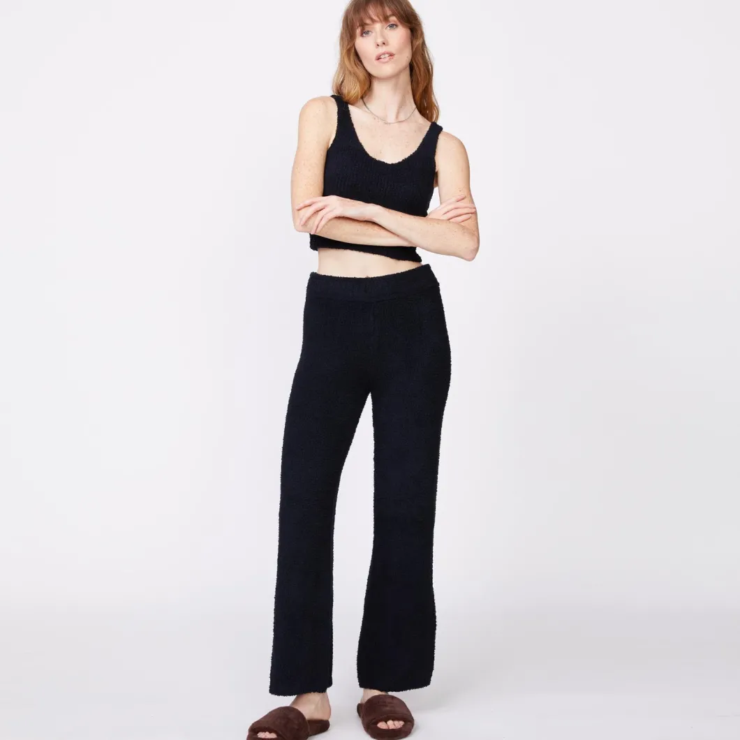 - Step into heaven in our Plush Sweater Pants. Made with the softest plush fabric, these lounge pants have an elastic waistband for comfort and a straight leg fit to compliment your silhouette. Pair with our Plush Sweater Tank and Robe to complete your look.