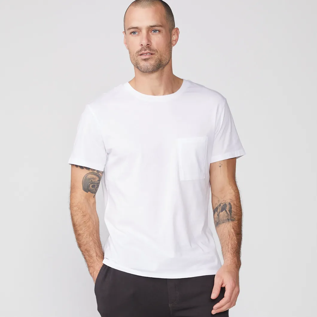 - Made from 100% cotton, this short sleeve relaxed crew neck is ultra-soft and has that laid-back (but never lazy) fit. Bonus feature: front pocket.
