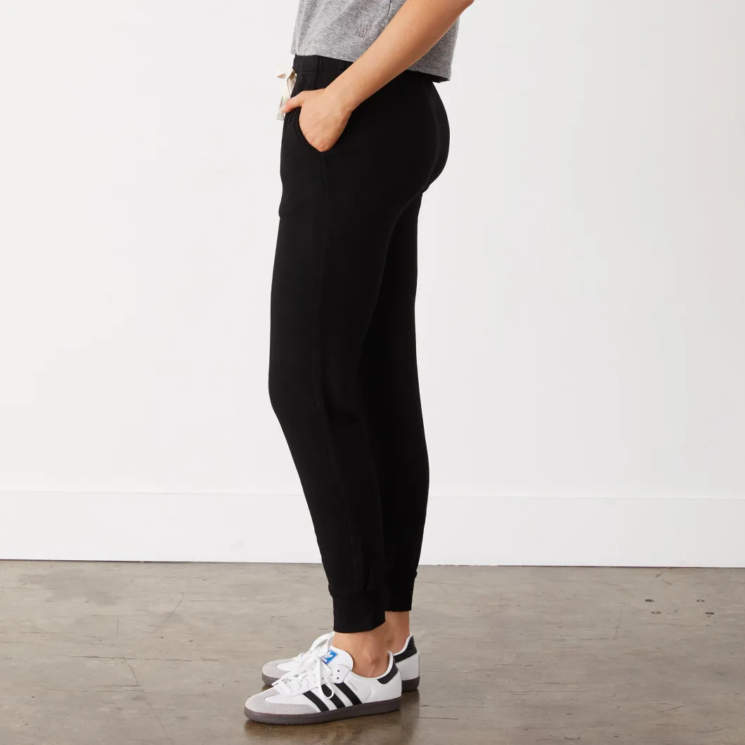 - Think boyfriend sweats but slim-cut. These slightly thicker Supersoft fleece sweats are both cozy and complimenting. Equipped with a flat drawstring and side pockets for easy access.