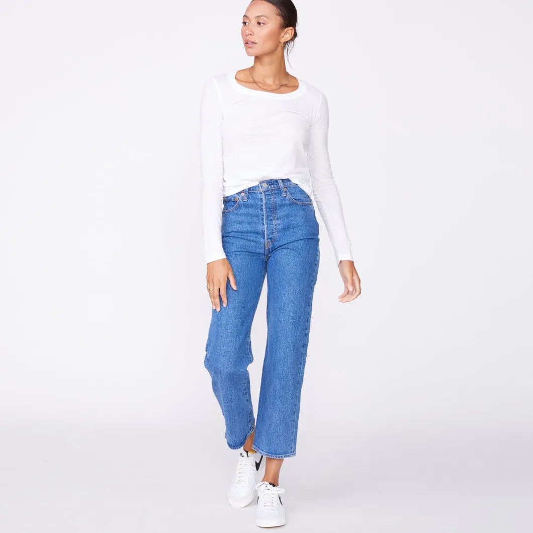 - Our long sleeve crew (shown here in fitted), is the perfect top drawer essential you’ll rely on for those cooler days. This classic tee has a forms-to-you fit that’s both comfy and really, really cute. Shown here in our light weight cotton jersey fabric.