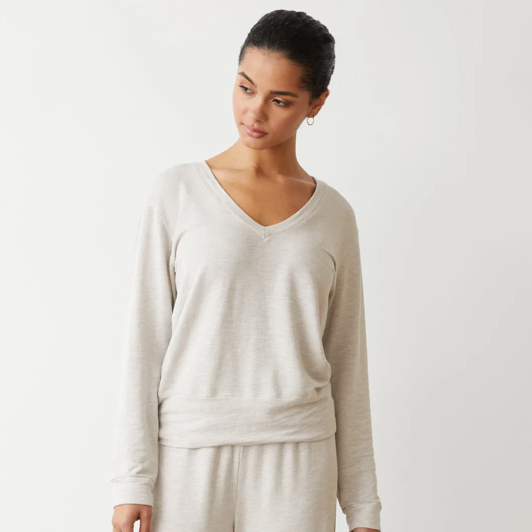 MONROW Supersoft V Neck Long Sleeve BONE Clearance