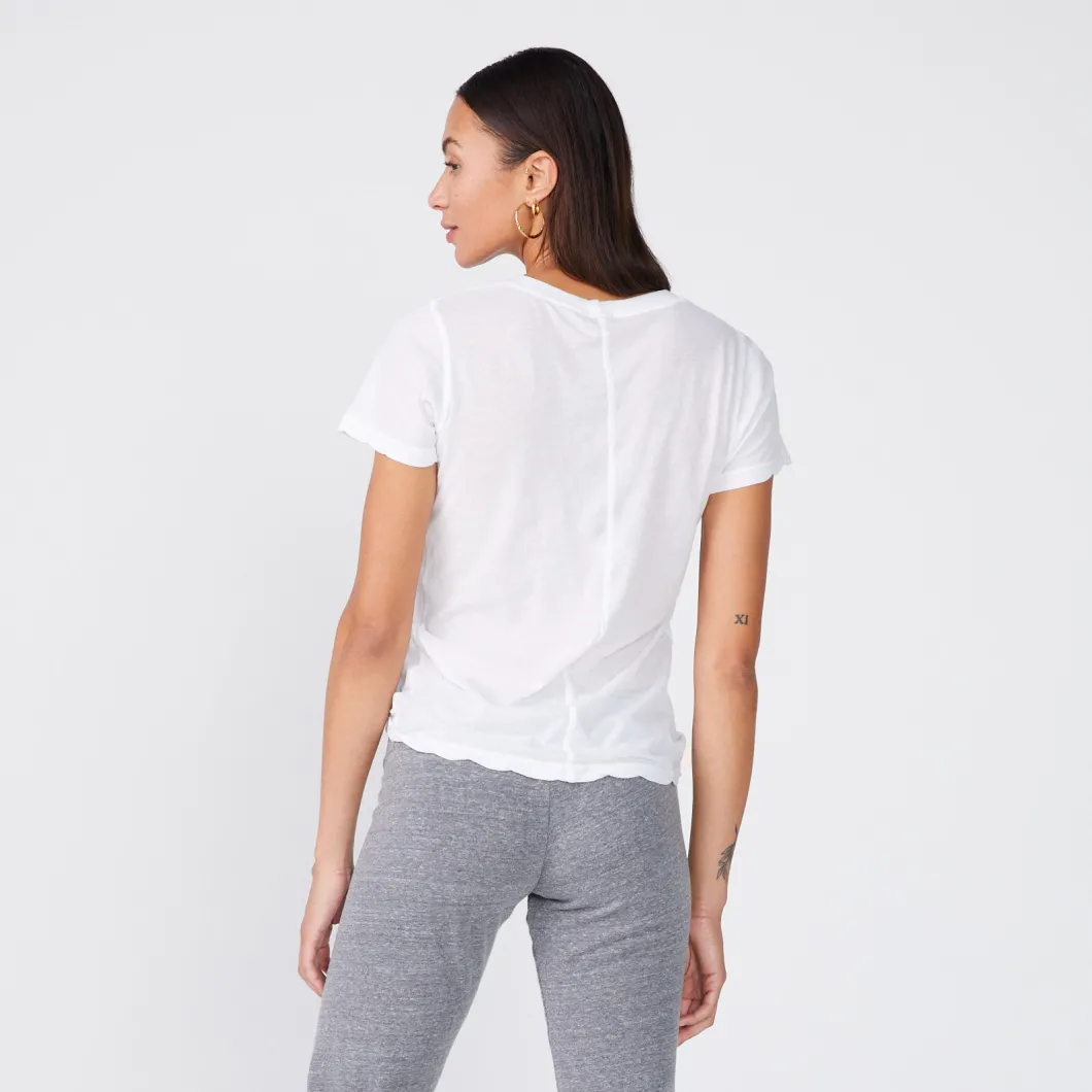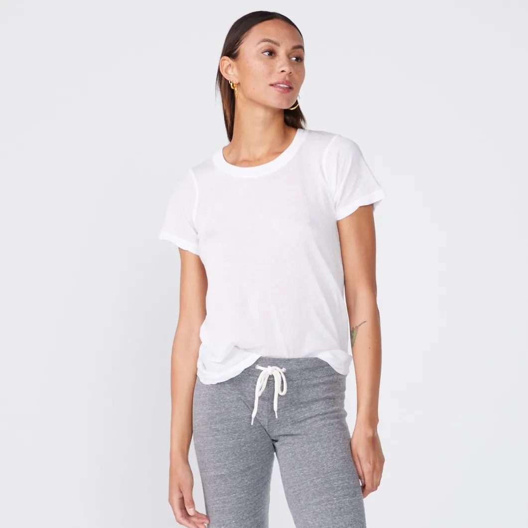 - Our best-selling crew neck tee is the kind of forever favorite you’ll want in every fabric and color. The most fitted of the crews, this tee is cute enough on its own and even better tucked into trousers. Throw a cute blazer or zip-up sweatshirt over it and it acts as the perfect base layer. Shown here in our ultra soft, barely there Supima cotton tissue fabric.