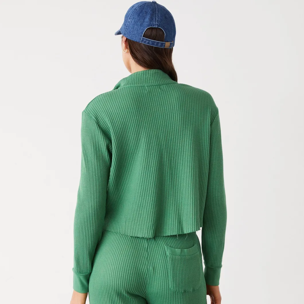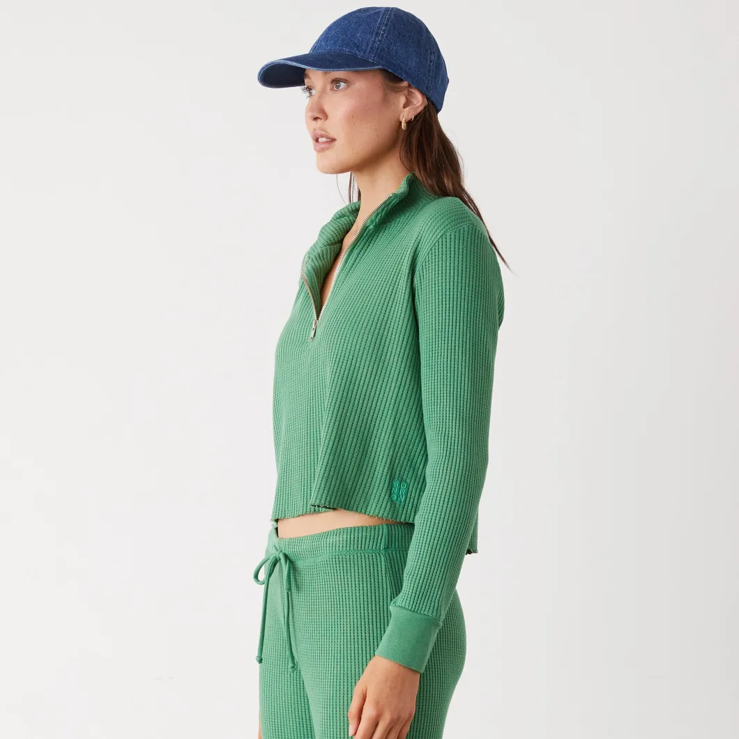 MONROW Waffle Half Zip Sweatshirt GREENAPPLE Sale