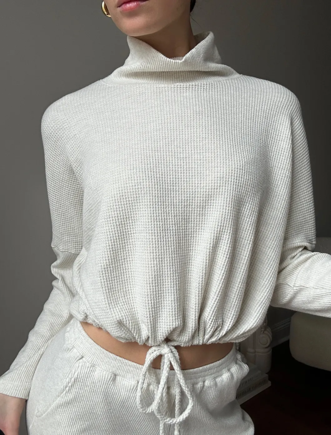 Wrap yourself in luxurious warmth in our Brushed Thermal Drawcord Waist Sweatshirt