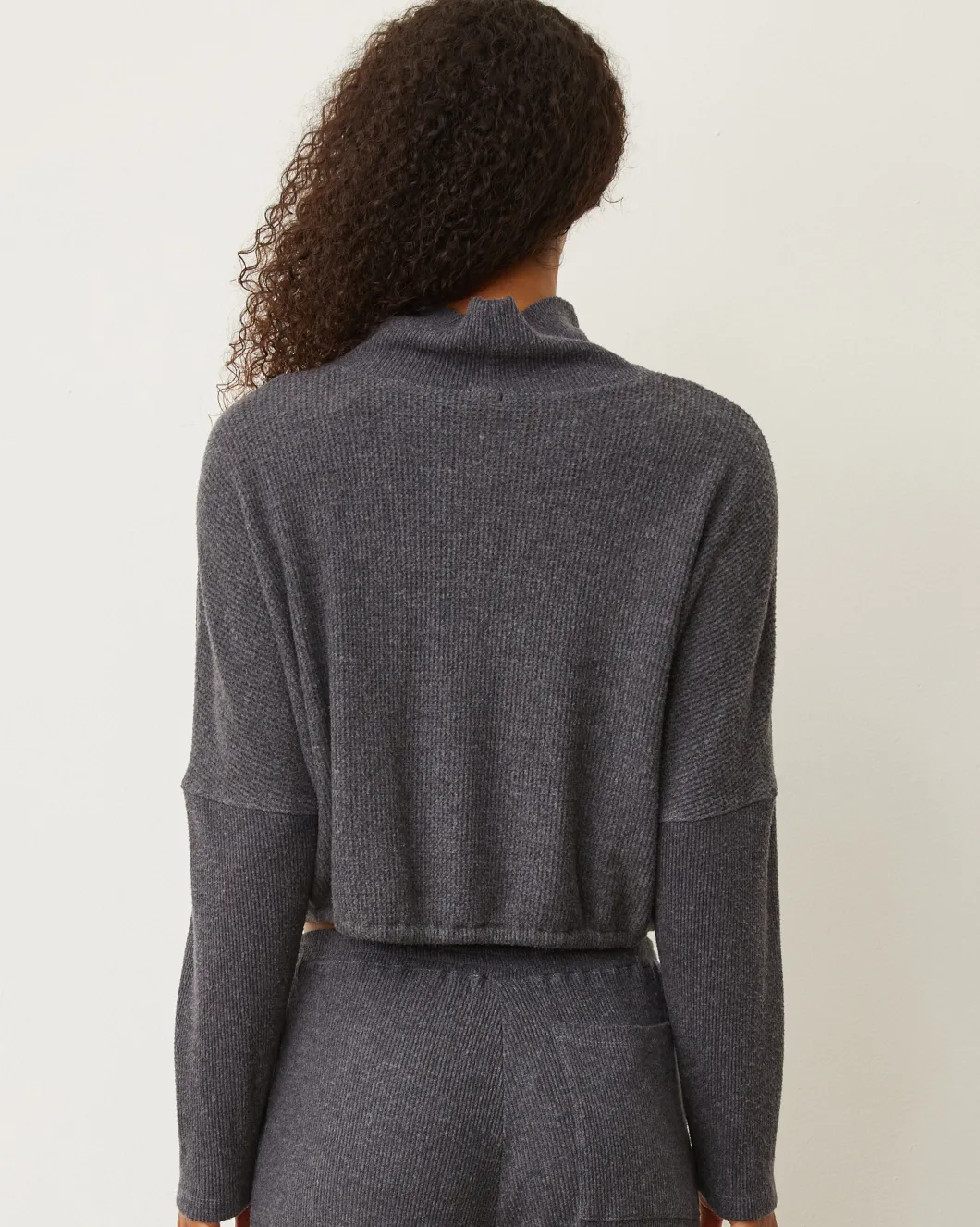 • Mock neckline and drawstring at the bottom hem for an adjustable, cocoon-like feel
