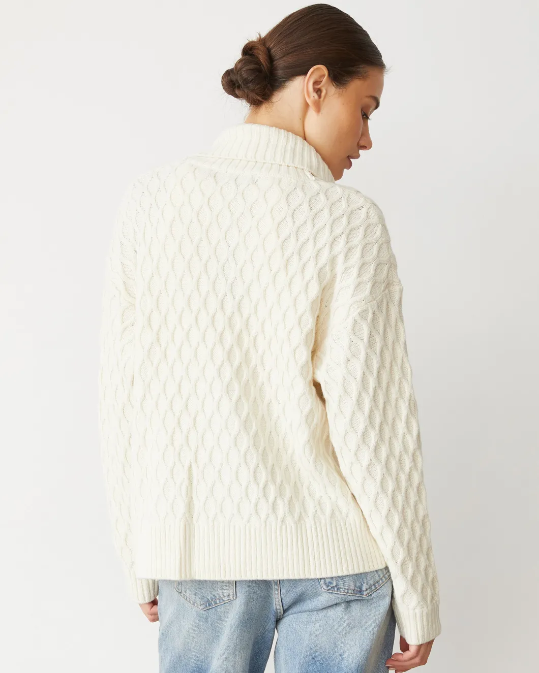 Embrace the warmth of our Cable Knit Zip Cardigan, crafted from a luxurious wool and alpaca blend that combines cozy comfort with timeless style.