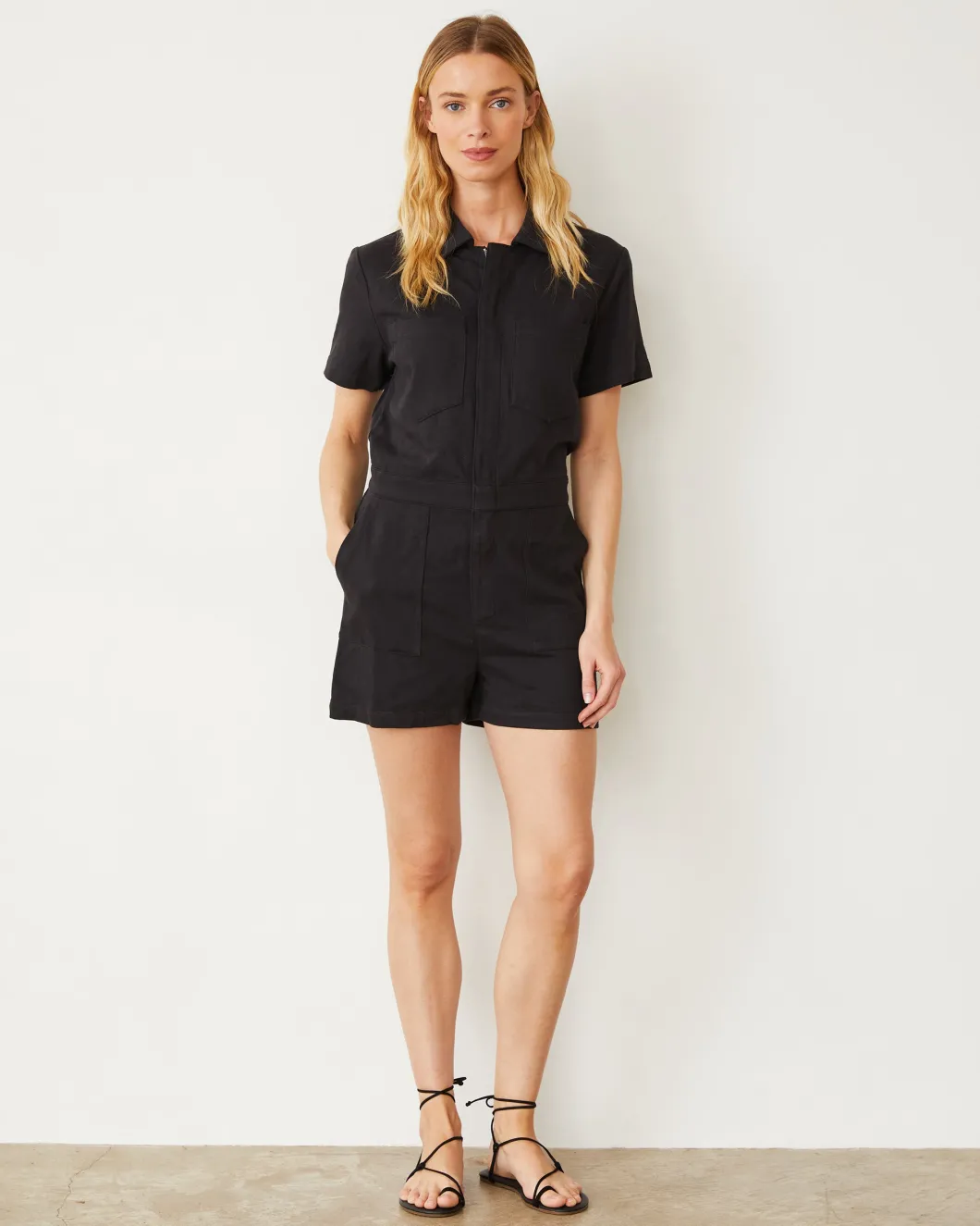 MONROW Faded Black Soft Twill Romper Online