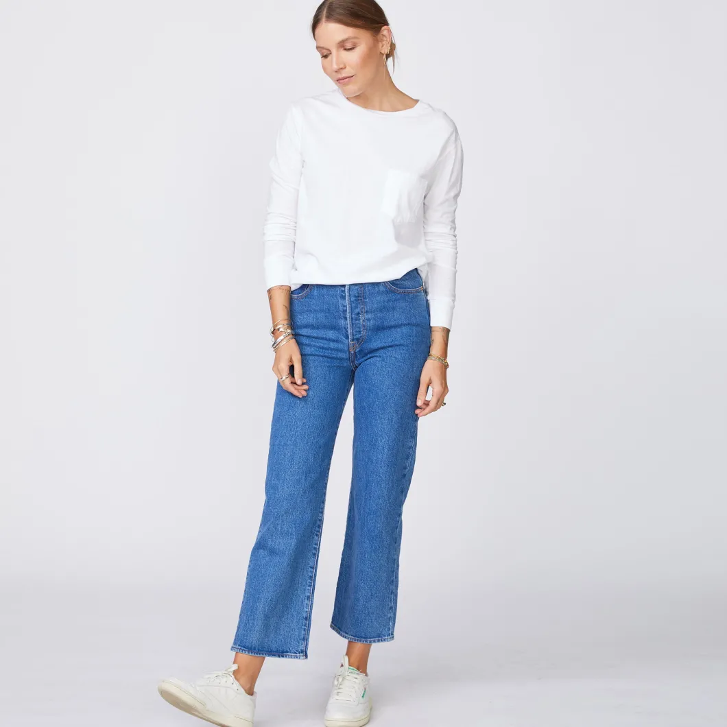 - Made from 100% cotton, this long sleeve relaxed pocket crew neck is ultra-soft and has that laid-back (but never lazy) fit.