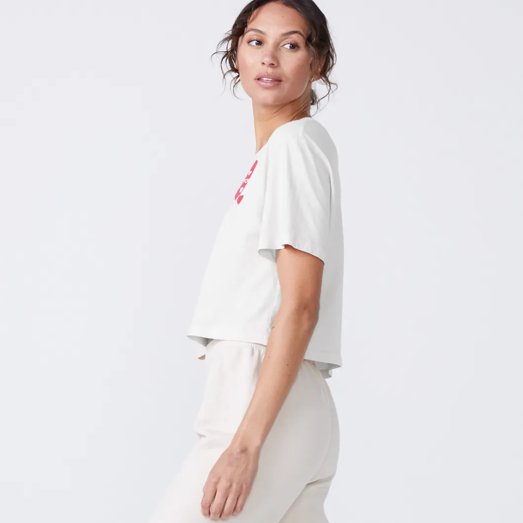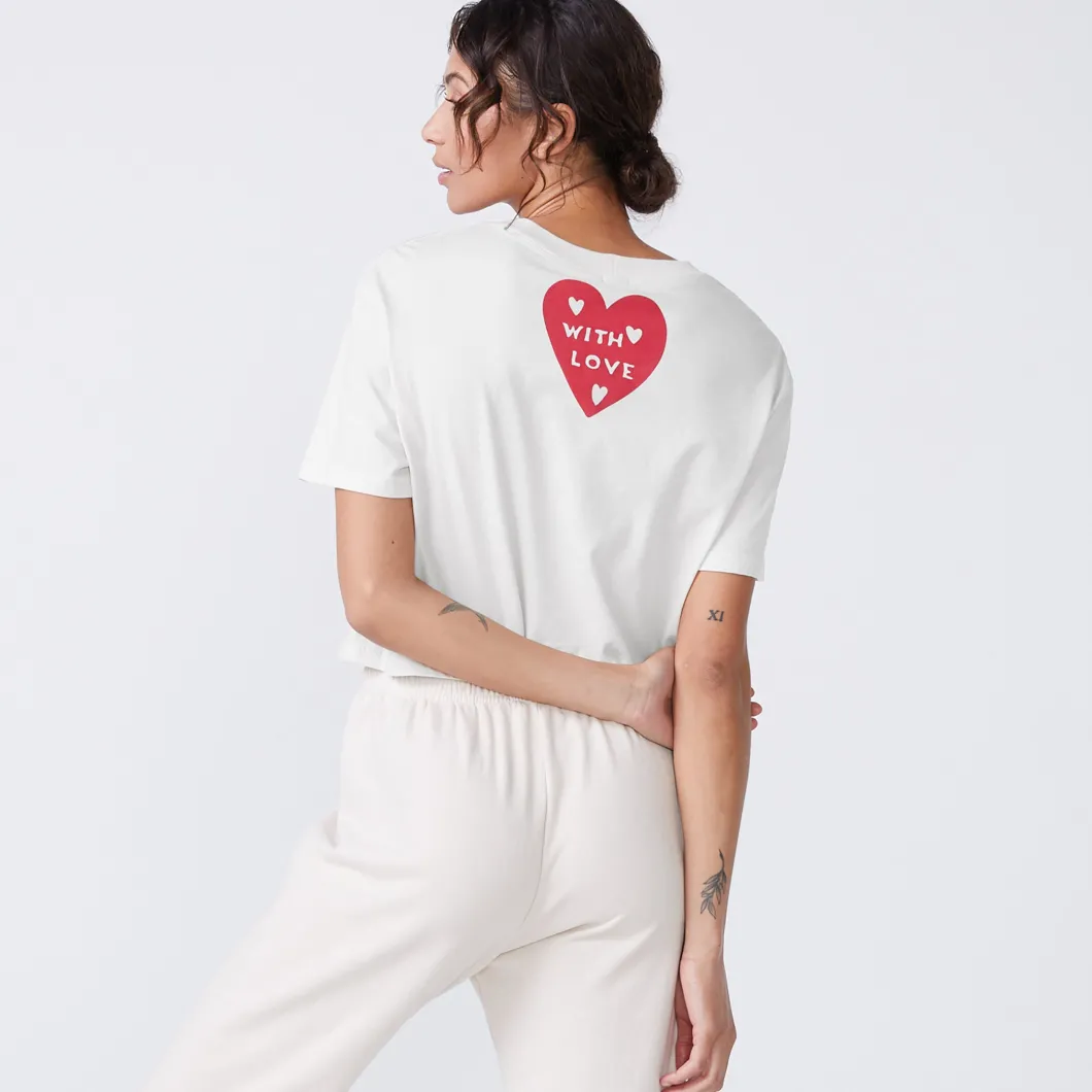 - Love is in the air. Our 50’s Vintage Tee is the ultimate wardrobe staple, now with an adorable printed heart graphic. Made with a relaxed fit, crew neckline, and slight crop, this tee pairs perfectly with your favorite vintage jeans or the matching Love Letter Supersoft Fleece High Waisted Sweats.