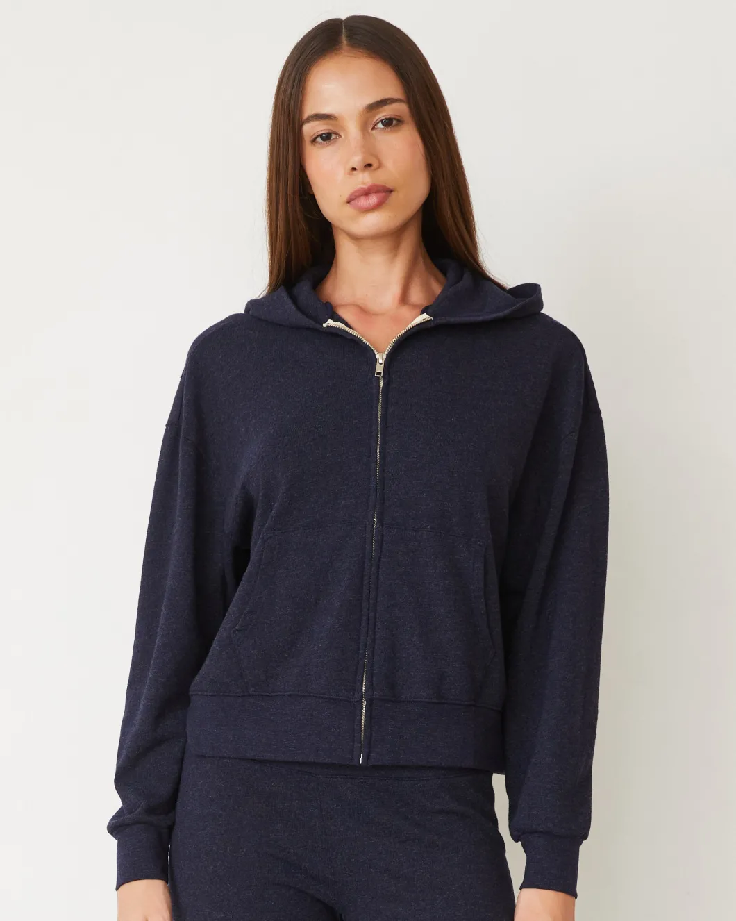 MONROW Original Fleece Zip Up Hoody HEATHEREDNAVY Store