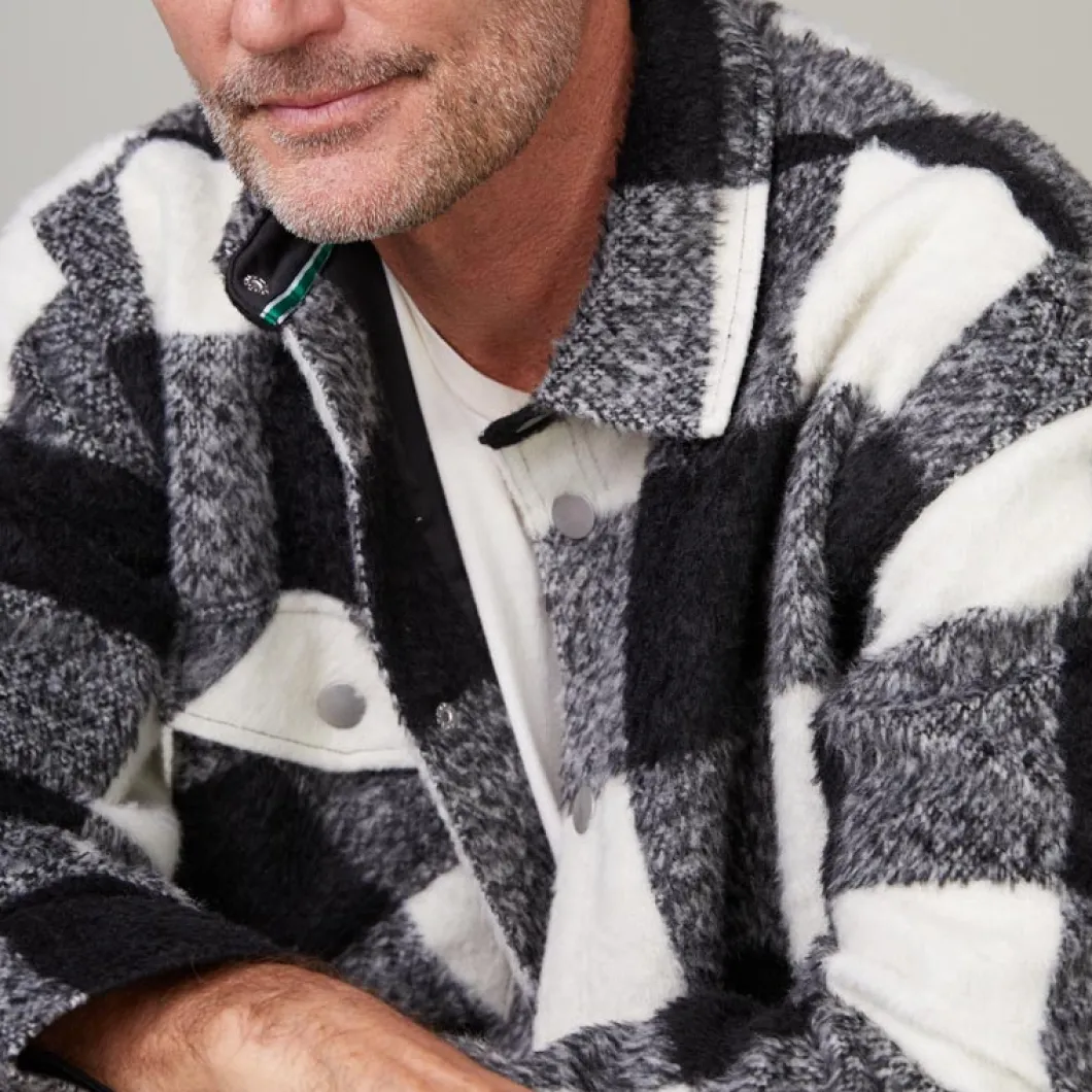 MONROW Plaid Flannel Shacket BLACK/NATURAL Hot