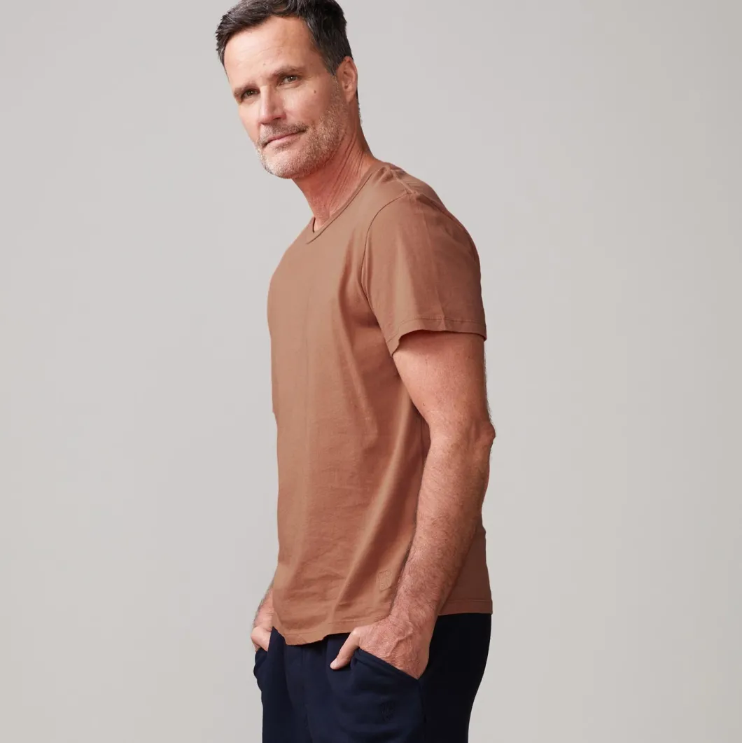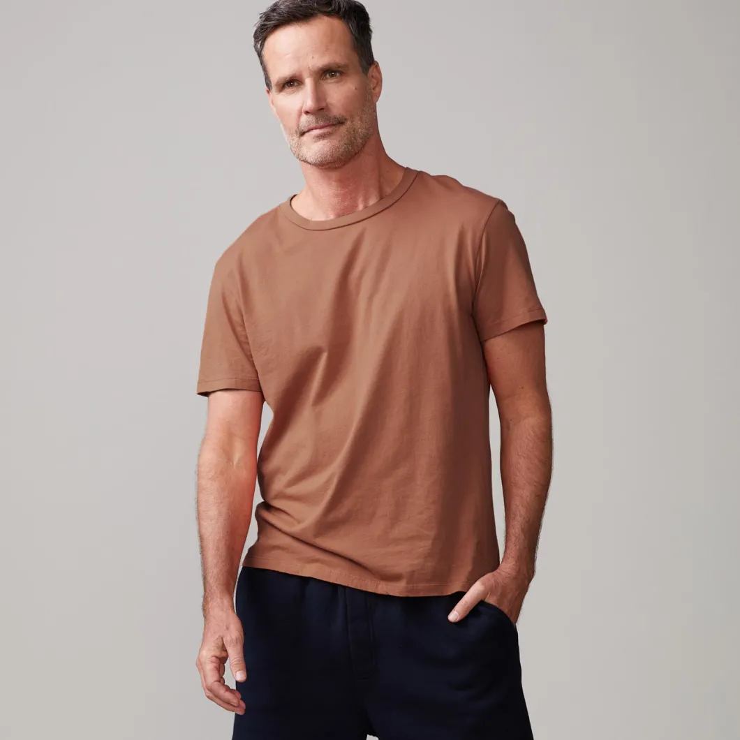 - Made from 100% cotton, this short sleeve relaxed crew neck is ultra-soft and has that laid-back (but never lazy) fit.