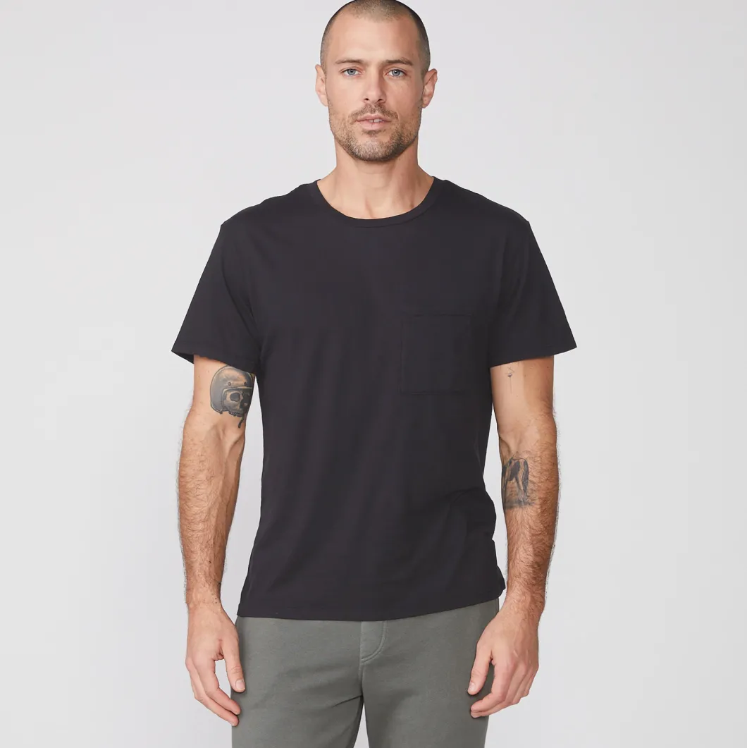 - Made from 100% cotton, this short sleeve relaxed crew neck is ultra-soft and has that laid-back (but never lazy) fit. Bonus feature: front pocket.
