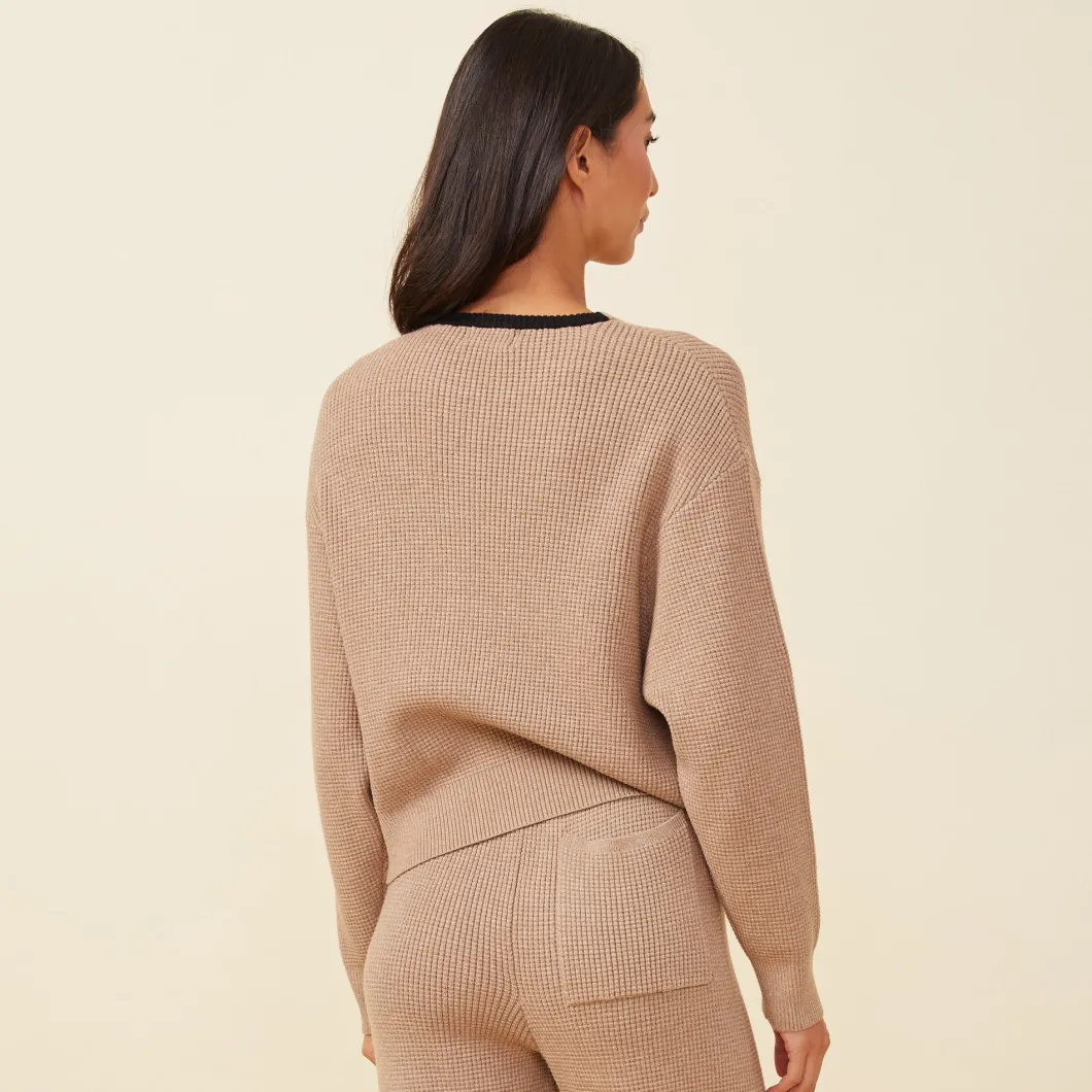 MONROW Soft Knit Waffle Crew Neck Sweatshirt BARLEY Fashion