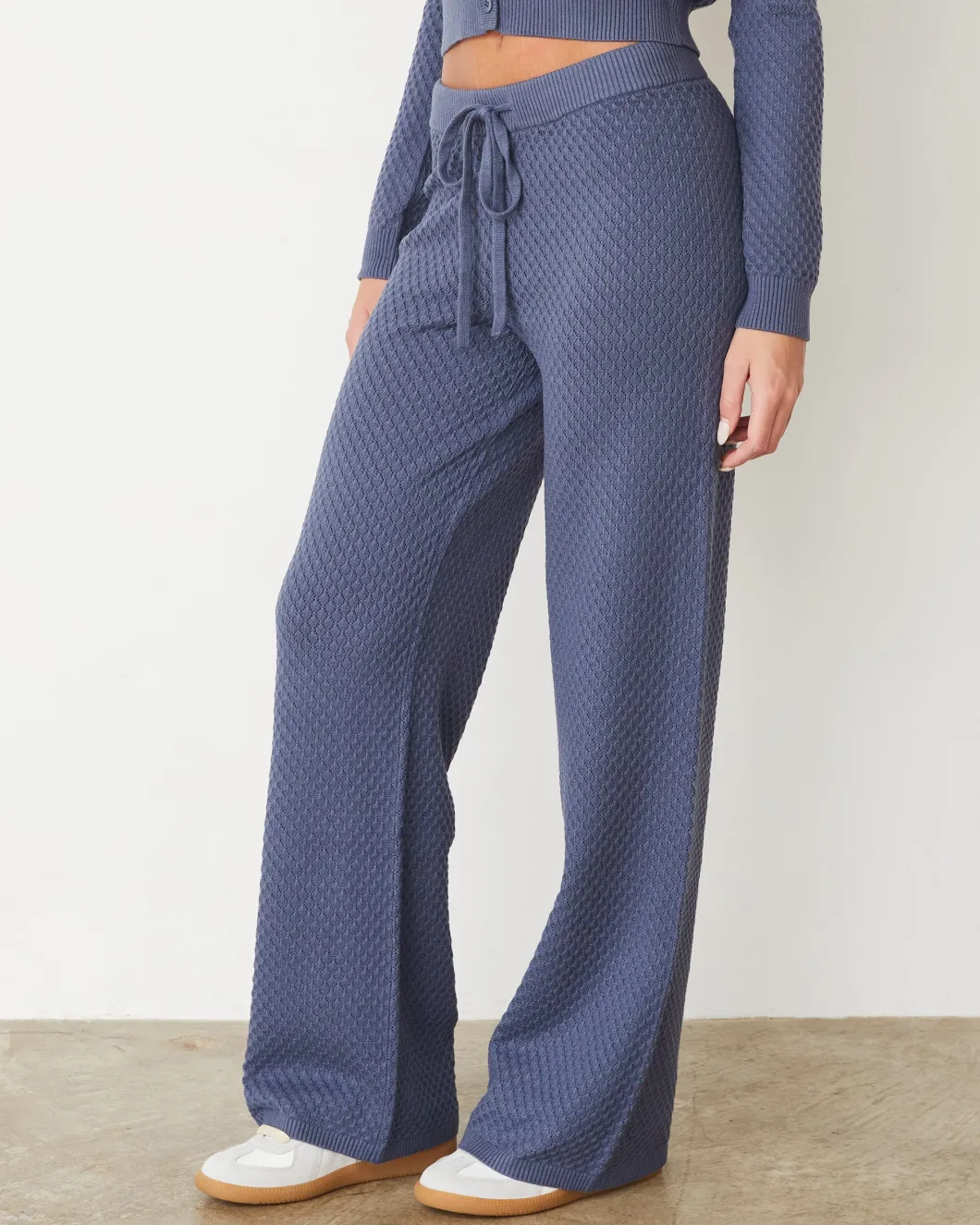 These pants combine style with ease, making them perfect for relaxing at home or stepping out for a farmers market run. The distinctive texture and meticulous detailing offer a new take on classic lounge pants.