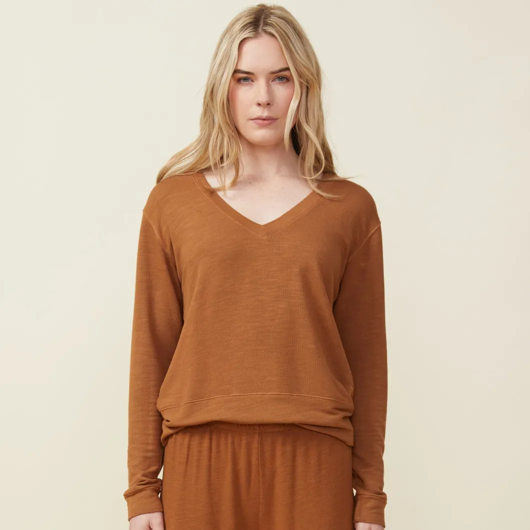 MONROW Supersoft Long Sleeve V Neck BROWNSUGAR Sale