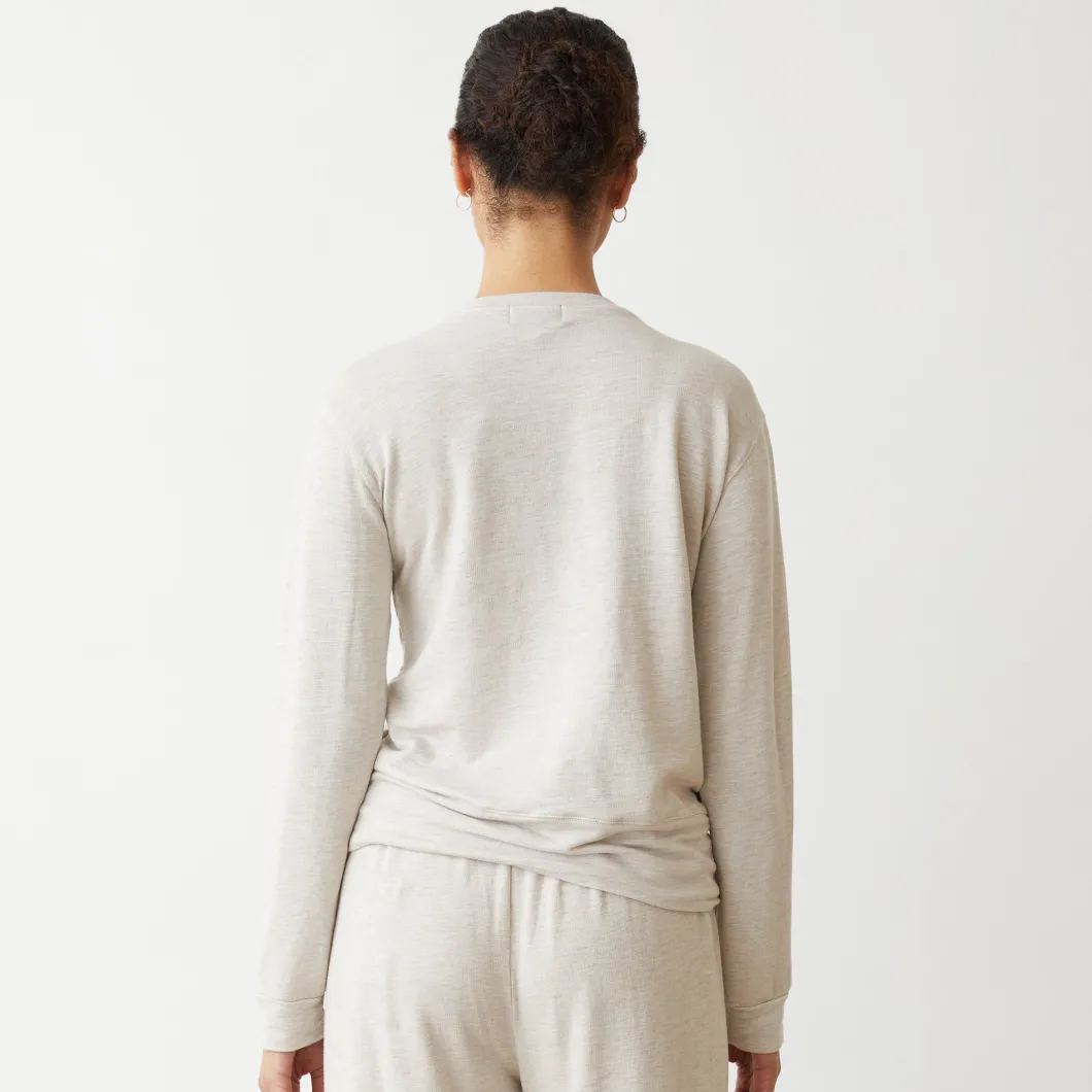 MONROW Supersoft V Neck Long Sleeve BONE Clearance