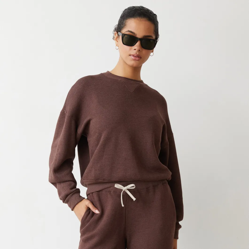 MONROW Teddy Fleece Crew Neck Sweatshirt DARKOAK Fashion