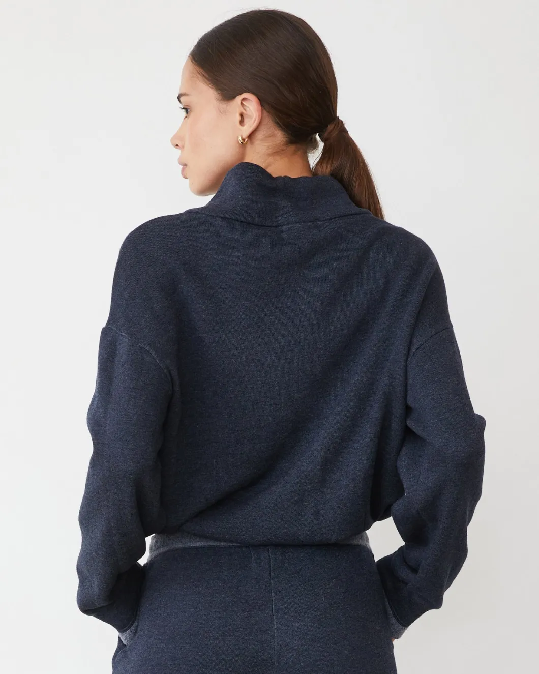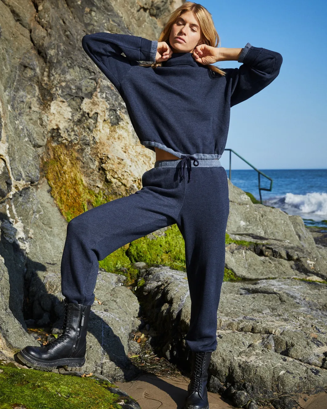 • Funnel neckline and drawstring at the bottom hem for an adjustable, cocoon-like feel • Dropped shoulder and oversized fit • Slightly cropped design
